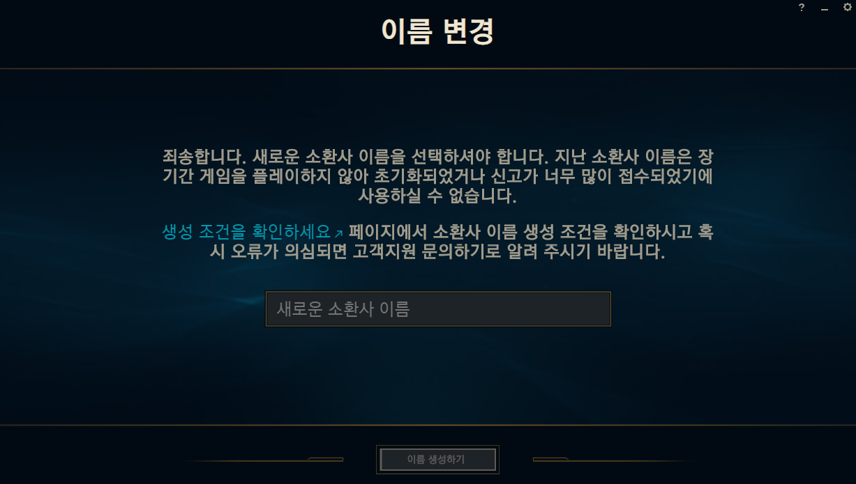 정지 해제되면 새로운 닉네임 생성을 해야합니다!!!!! 정든 내 닉네임 안녕......